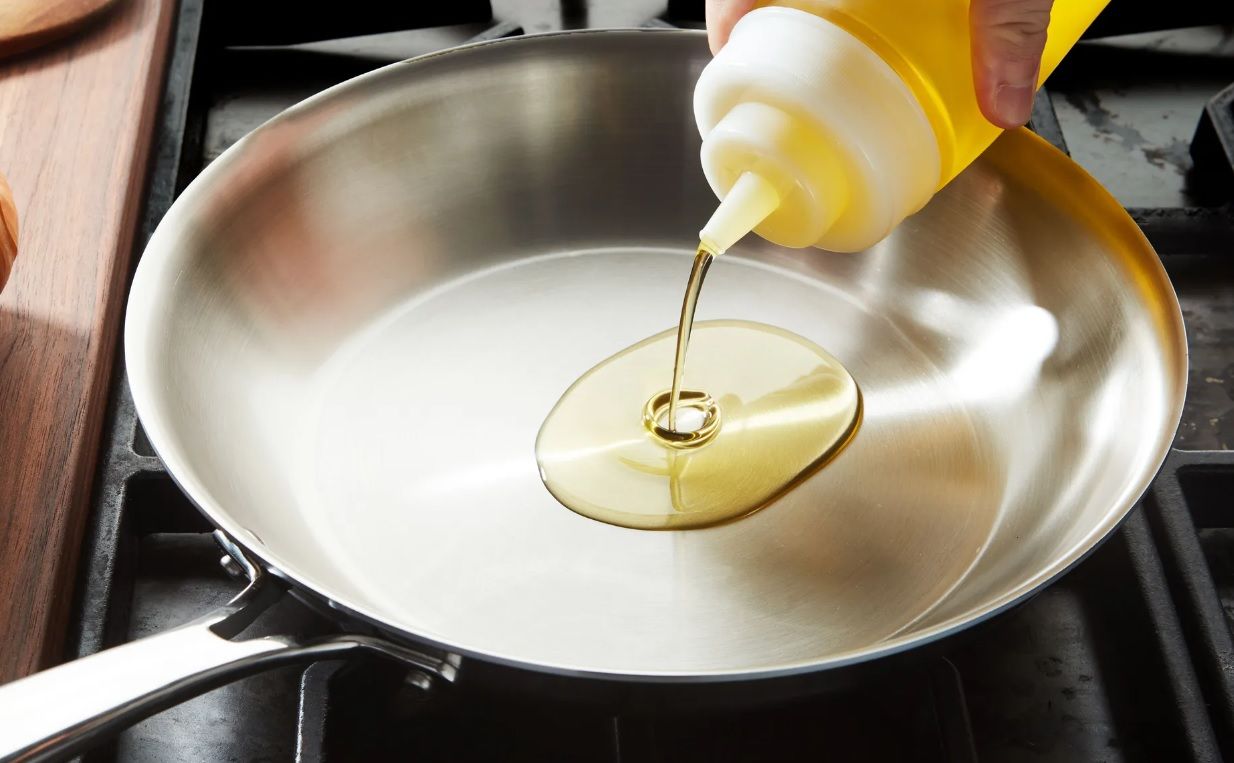 – Mari kita panaskan minyak terlebih dahulu, tuang minyak sedikit pada wajan