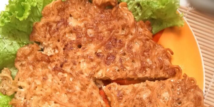 - Bentuk martabak indomie yang sedang dimasak sesuai selera.