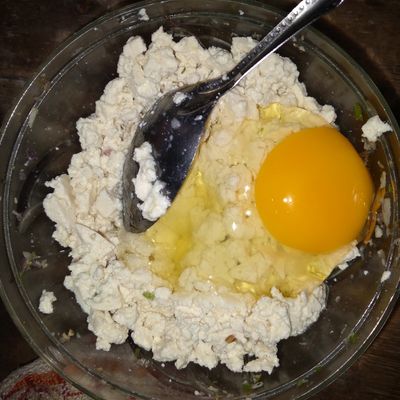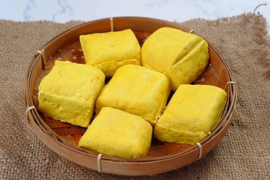 Pertama kita lumatkan tahu kuningnya menggunakan tangan.