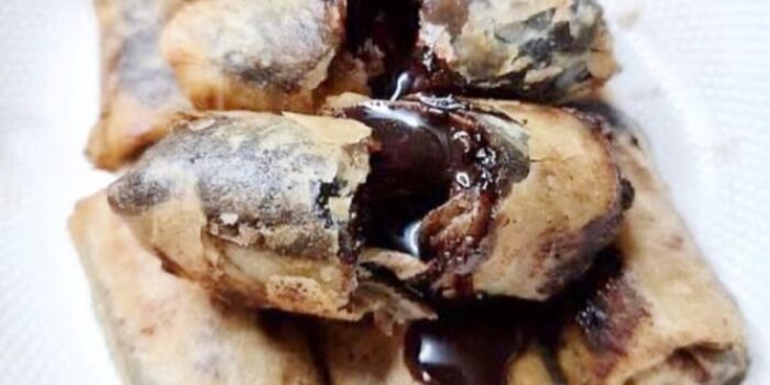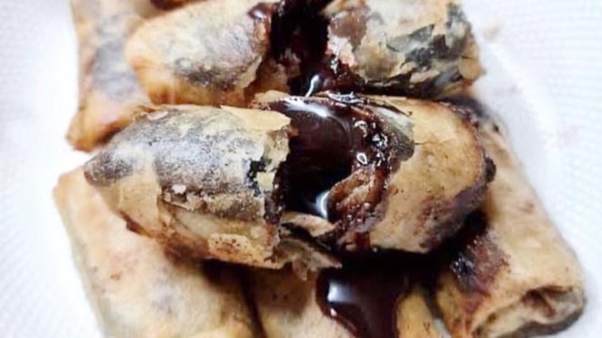 Makanan PISANG COKELAT LUMER ala rumahan sudah jadi dan siap untuk disantap.