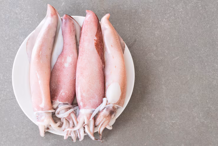 Balurkan cumi yang sudah dipotong ke dalam tepung kering.