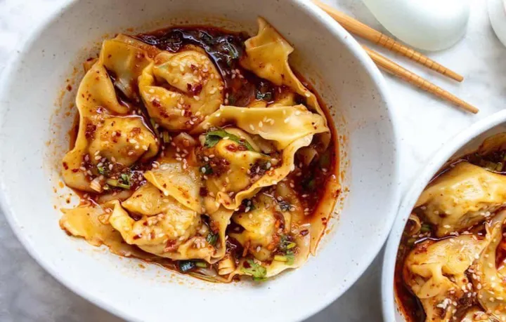 Sajian dari pangsit yang lembut dipadukan bersama rasa pedas gurih dari chili oil.