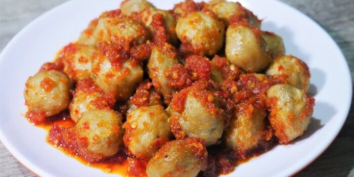 Makanan dari RESEP PENTOL MERCON sudah jadi. Rasanya pedas, gurih dan nikmat.